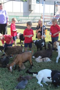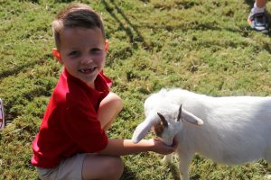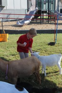 A Lower Schooler feeds a goat.