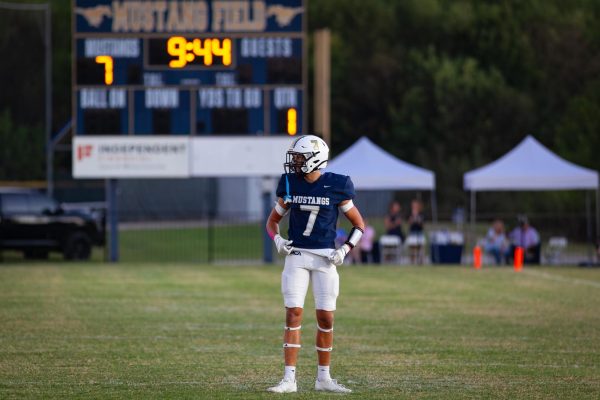 On Friday, October 10, the Mustangs delivered an outstanding performance on our home field, beating Shelton with a score of 45-24. Right from the kickoff, the Mustangs started off hot and went up 14-0 early. The offense was truly unstoppable, executing plays and moving the ball down the field with no resistance. Senior quarterback Cody Dow had himself a game, throwing for 257 yards and four touchdowns. Junior, Harry Thompson, also had a standout game, racking up two touchdowns and 102 receiving yards. Junior, Chase Bruegel, had 62 receiving yards and one touchdown. The Mustangs’ defense played outstanding all night, shutting down Shelton’s offense and forcing turnovers all game. The energy from the crowd was electric; every big play was met with cheers, creating an amazing atmosphere that helped the Mustangs. Although Shelton was unable to come back in the second half, the Mustang’s remained focused and determined to secure the victory. In the end, it was a win with a score of 45-24. This game was a historic moment as the Mustangs celebrated our very first home game victory on our own turf. The Mustangs play next Friday, October 17, at Houston Cypress Christian.