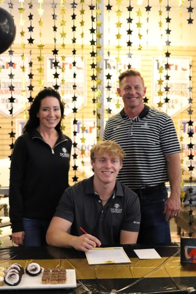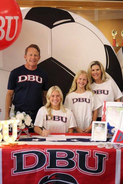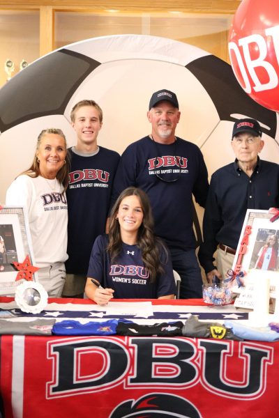 On Wednesday, November 12, the Seniors had their annual signing day to commit to their schools. This signing was to commit to their college of choice for their sports. We had two athletes commit to Dallas Baptist University for soccer, and one commit to Dordt University for baseball. Both seniors, Sadie Zbranek, and Tatum Barnard, committed to Dallas Baptist to continue to play soccer for the Patriots. Senior, Tennyson Clark, committed to Dordt University in Sioux City, Iowa. He will be playing soccer for the Defenders this upcoming year. When asked about her decision to go to Dallas Baptist Zbranek said, “I’m so grateful for this opportunity to play for this amazing organization. I was so happy to see all the people who helped me along my journey come and support me. I can’t wait for this upcoming year!”