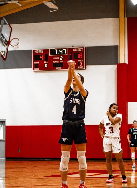 On December 6, the girls’ varsity basketball team participated in the S&S Tournament. The team finished the weekend with a 2-2 record. They played a total of 4 games, winning 2 and losing 2. In their first game, they faced Whitesboro JV and won by a dominant 64-15 score. The team controlled the game from start to finish, establishing a significant lead early and maintaining it throughout. The next day, they played at Sadler High School. The game was competitive, but the Mustangs secured a 41-30 victory. This game was more closely contested, with both teams exchanging leads. However, the Mustangs maintained their advantage and closed out the game with an 11-point lead. The team played two additional games during the tournament, which resulted in losses. They played against the Whitesboro High School varsity team. They lost 30-36. They also lost to Texoma Christian. They lost 28-53. These games provided the Mustangs with valuable experience, allowing them to identify areas for improvement moving forward. Sophomore, Elizabeth Thompson, spoke about the tournament saying, “I am very proud about how our team did this weekend and I am excited to see where this season will take us.”