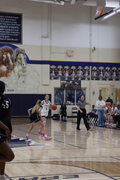 On January 6, the MCA girls’ varsity basketball team played against Dallas Christian for their first district game. The game ended with a 53–41 loss for the Lady Mustangs. MCA stayed close during parts of the game, but Dallas Christian kept the lead through the final minutes. Sophomore, Elizabeth Thompson, led the Lady Mustangs in scoring with 21 points. The team continued to work the ball on offense and played defense throughout the game. The matchup was part of the regular season as MCA prepares for upcoming games. when sophomore, Cana Heckadon, was asked about the game she said, “We had good defense and we put lots of pressure on their key players.”
