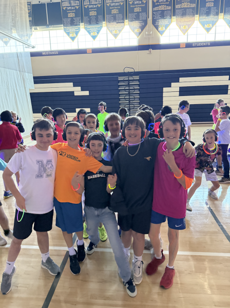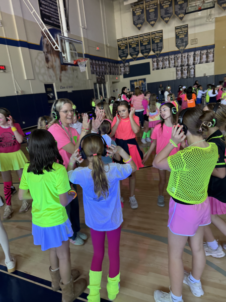 On Friday, February 27, the McKinney Christian Academy Lower School students held their first silent disco. This event took place in the SLC, with each grade taking its turn to party. Each year, the Lower School holds a fund raising event where the students participate in a jogathon known as the Fun Run. The Lower School was so blessed with generous donations this year that they decided to hold a disco party instead of the running fundraiser. Black lighting and neon colors filled the SLC. There were headphones for everyone, including three different music stations to switch between. The students dressed up in neon colors to stand out as they danced. When fifth grader, Scarlet McWilliams, was asked about her experience at the silent disco, she stated, “The silent disco was a blast. I loved seeing all of the neon colors and getting to change song stations with all of my friends. When a new song came on, we all got to dance around together, and I had so much fun.” Fifth grader, Ally Tennison, went on to add, “We got to jump up and down to each song and sing really loudly with our friends. My favorite part was when everyone was listening to the Macarena and dancing it together.”